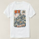 Retro-inspired T-shirt design featuring a powerful vintage robot towering over Tokyo, with bold Japanese characters and explosive energy. A striking mix of Japanese pop culture, sci-fi, and classic poster style.