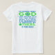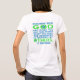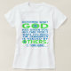 A camiseta de manga curta feminina tem letras azuis e verdes brilhantes lendo, "Olhe o que Deus lhe deu, e tire dele o que você precisa. O restante é necessário para outros." Citação é de Thomas Aquinas, um santo católico romano. Um conselho maravilhoso para guiar sua vida.