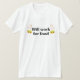 Trabalhará para a camiseta de comida. A camisa divertida diz que Will trabalha para a comida com dois cheeseburgers nos lados das palavras.