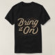 Uma design de camiseta ousada e vibrante com a frase "Traga-a!" em um layout dinâmico e multicolorido. O design transmite um sentido de confiança, energia e disponibilidade para enfrentar desafios. Perfeito para quem adota uma atitude positiva e assertiva.