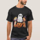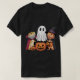 Três adoráveis dragões barbudos vestidos de vampiro, fantasma, e pé de bruxa com lanternas-de-jack, prontos para a diversão do Halloween nesta ilustração fofa e festiva.