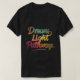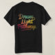 Esta camiseta vibrante apresenta a frase "Dreams Light Pathways" em uma fonte ousada e escrita à mão. O texto é colocado sobre um fundo colorido e turvo que cria um sentimento dinâmico e energético. A design multicolorido e a tipografia ousada tornam-na uma peça atraente e atraente.