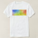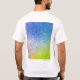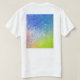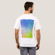 A parte dianteira da camisa caracteriza os trabalhos de arte abstratos contemporâneos por Sanaye intitulou, transições. Para trás da camisa caracteriza o painel esquerdo do triptych.