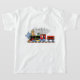 Um clipart alegre brilhante de um trem do brinquedo com o fumo que billowing de sua pilha. Design colorido do divertimento.