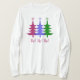 Personalizável Três Felizes Árvores De Natal Ho! Ho! Ho! Frente de Camisa T: Três coloridas árvores de Natal empinadas com estrelas de floco de neve Palavras personalizáveis: "Ho! Ho! Ho!" Trás: Correspondendo Três estrelas de floco de neve Vermelho Azul Verde