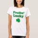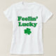 Design afortunado do trevo de Feelin. Excelente para um homem ou uma mulher durante o dia de Patrick de santo. Se você é "feelin afortunado" em um bar irlandês ou festival, ou apenas afortunado para se realizar na vida onde você está vivendo, este design é para você! Caracteriza um trevo verde grande e é perfeito para toda a celebração irlandesa.