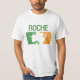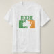 Um t-shirt que caracteriza um trevo branco, verde, e alaranjado irlandês afligido com o sobrenome Roche.