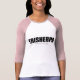 Camiseta feminina mangas raglan 3/4 da Bella+Canvas, Branco/Cor-de-rosa, Adulto P