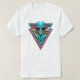 Design simples de uma alienígena com elementos triangulares, com uma paleta colorida dominada por taruga (tosca) e rosa. A alienígena tem um olhar lúdico e futurista, com formas de triângulo geométrico incorporadas ao design, criando uma sensação vibrante e moderna.