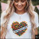 This piece is special for its bold blend of typography and tribal heart art conveying the universal message "Love conquers all". The heart shape is dramatically filled with intricate geometric patterns and surrounded by fiery flames. The contrasting color scheme of teal, orange, and red makes this a high-impact, passionate design perfect for apparel or wall art.