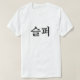 Texto coreano apenas design: 슬 퍼, triste em coreano. Esta camisa branca colorida pode ser personalizada para lhe dar uma aparência única. Você pode personalizar o tipo de fonte, a cor, o tamanho, alterar o texto, remover e adicionar texto, adicionar foto e muito mais.