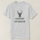 Esta camiseta do marido de troféu faz o presente perfeito para o seu marido troféu! Possui fundo de camo, cabeça de veado com galhos e as palavras Trophy Husband.