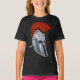Um capacete de troia que parece pronto para a batalha é o que é esse design. Este capacete de troia tem um impressionante prato de cabelo vermelho correndo de cima para baixo. Este design de capacete de troia parece excelente nesta camiseta de meninas. Perfeito para si mesmo ou como presente