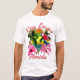 Um legal design de ilha tropical para lembrar suas férias em Key Largo Florida. Um pôr do sol oceânico com papagaio entre palmeiras.