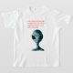 A fun meme-style design featuring a classic grey alien with a humorous caption about avoiding contact with the world.
