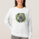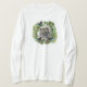 Keeshond com neve em sua cara que olha através de uma grinalda uma do Natal de uma série de camisas sazonais do Keeshond t