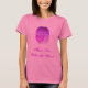 Uma nota roxa da música na forma de um coração em um Tshirt cor-de-rosa. Debaixo de lê da "mentiras música dentro do coração". O presente perfeito para qualquer um que é um melómano!