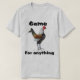 Tshirt inglês velho da galinha anã de jogo que caracteriza o galo novo pequeno Dourado de Duckwing e as palavras "jogo para qualquer coisa"