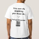 Uma camisa que promove o livro de Nashua Helmsman, "Qualquer coisa que você deva fazer."