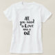 Tudo que você precisa é amor e um t-shirt do gato está em um texto escrito à mão bonito. Este é um presente maravilhoso para todos os amantes do gato!