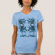 Uma arte contemporânea, o design crocante é apresentado em uma combinação de formas em azul-turquesa e cinzas de carvão, influenciada pelos estilos design do Sudoeste e do Mediterrâneo. Foto aqui numa camiseta "azul bebê" (Bella+Canvas), com outras cores e estilos disponíveis, a design projeta uma qualidade artística invulgar, quase sinistra para uma adição versátil e moderna ao seu visto casual e diário (seja em casa, socializando com amigos, praticando esportes ou correndo sobre a cidade). A design de camisa como "arte 'vestível'" também expressa um senso de seu estilo individualizado, contribuindo para um sentimento de estar "unido" e criativo em suas escolhas pessoais.