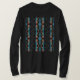 Uma combinação abstrato de formas e linhas em azul-turquesa, lacre e ferrugem cria um padrão de azulejo vertical com linhas de zigue-zague em linhas, reminiscente dos estilos de arte mediterrânico e Nativo Americano/Sudoeste. Foto aqui em uma camiseta preta de manga longa, com outros estilos e cores disponíveis. Este é um olhar brilhante e elegante, que pode melhorar o seu visto casual e diário (seja em casa, socializando-se com amigos, praticando esportes ou correndo sobre a cidade fazendo tarefas). Como a design de camisa tem uma qualidade artística, sofisticada, e projeta um estilo pessoal individualizado, há uma sensação de ser "reunida", que pode ser especialmente motivadora para aqueles que trabalham remotamente e/ou passam muito tempo em casa.