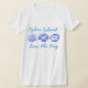 Ilha Colorida Tybee, camisa de concha Georgia. Tybee Island, em um roteiro azul, está acima das três conchas bonito. Sob as conchas, em um roteiro azul correspondente, está o Mar no Dia. Mostre seu amor pela bela costa da Georgia com este vibrante design de concha, em maravilhosas matizes azuis do oceano. Quer você esteja ansioso por umas férias de praia divertidas, ou apenas comprando e fazendo recados, esta camisa atraente vai adicionar uma vibração legal na praia ao seu humor.