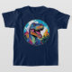 Adicione um pouco de rugem ao seu guarda-roupa com esta camiseta vibrante com um design de dinossauro corajoso e colorido com uma vibração vintage em quadrinhos. Esta camisa gráfica pré-histórica ao estilo cartoon certamente atrai atenção instantaneamente e é perfeita para crianças ou qualquer pessoa que ame história natural!