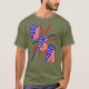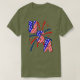 Um design Patriótico com letras brilhantes de estilo retrô e um padrão de explosão estelar.