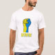 A bandeira ucraniana colore o punho desafiador azul e amarelo com o texto da Ucrânia. SLAVA UKRAINI Glória à Ucrânia. Apoiem as pessoas ucranianas!