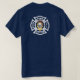 O crânio flamejante do sapador-bombeiro ajusta chamas contra o símbolo do logotipo da cruz maltesa do departamento do fogo de de combate ao fogo e de resistente bastante para obter o trabalho feito.