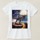 Camiseta Um gato dirigindo unicórnio de dinossauro no espaç