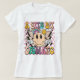 Um Pouco Dramático, Engraçado, dizendo tipografia A camiseta feminina mostra o texto "Um Pouco Dramático" na tipografia moderna num fundo cor-de-rosa de pranchas de xadrez com flores ranhosas, relâmpagos e um rosto sorridente. Projetado pelo Evco Studio www.zazzle.com/store/evcostudio