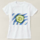 Um lápis e desenho de caneta de uma fatia de um pepino em uma toalha de mesa.