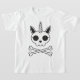 Essa obra gráfica combina o branco e o macabro, apresentando um crânio estilizado com olhos grandes e expressivos, chifre unicórnio e orelhas semelhantes a gatos. Como se vê na camiseta de Sophie, o crânio é acompanhado por bósforos, melhorando seu apelo lúdico, mas gótico. O design usa um esquema simples de preto e branco, que enfatiza o caráter ousado e gráfico da ilustração. Esta mistura única de elementos faz dela uma escolha perfeita para aqueles que apreciam uma mistura de fantasia, humor negro, e arte minimalista.