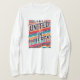 A design da camiseta "Unida em Liberdade" apresenta um poderoso símbolo de unidade e liberdade. No seu centro, uma tocha estilizada com chamas radiantes representa a liberdade, com as diversas mãos a subir em solidariedade, simbolizando pessoas de diferentes origens que se juntam. Ao redor da tocha, um círculo de estrelas evoca unidade, lembrando bandeiras representando liberdade. A paleta de cores inclui azuis profundos, vermelhos vibrantes e dourados brilhantes, simbolizando força, paixão e iluminação. O design equilibra imagens ousadas com uma estética moderna e limpa, enfatizando a mensagem da força coletiva através da liberdade.