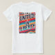 A design da camiseta "Unida em Liberdade" apresenta um poderoso símbolo de unidade e liberdade. No seu centro, uma tocha estilizada com chamas radiantes representa a liberdade, com as diversas mãos a subir em solidariedade, simbolizando pessoas de diferentes origens que se juntam. Ao redor da tocha, um círculo de estrelas evoca unidade, lembrando bandeiras representando liberdade. A paleta de cores inclui azuis profundos, vermelhos vibrantes e dourados brilhantes, simbolizando força, paixão e iluminação. O design equilibra imagens ousadas com uma estética moderna e limpa, enfatizando a mensagem da força coletiva através da liberdade.