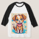 Camiseta Básica, Mangas Raglan 3/4, Branco/Preto, Adulto M