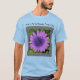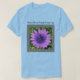Espalhe bons sentimentos em todos os lugares que você vai com uma camiseta contendo uma mensagem inspiradora e uma foto de uma margarida africana roxa cercada por uma fronteira feita com os intrigantes padrões encontrados no latido das árvores.