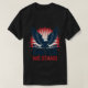Mostre seu orgulho americano e sua crença em unidade com este poderoso design. Apresentando uma águia majestosa e careca com asas estendidas e uma multidão de pessoas juntas, este gráfico declara corajosamente "UNITED WE STAND." É uma obra perfeita para qualquer um que valorize o patriotismo e a comunidade.