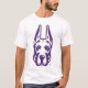 Este design é um close-up da Universidade em Albany Great Dane mascot head. A ilustração usa contornos roxos ousados com sombreamento detalhado em cinzas para a face do Grande Dane, destacando suas características angulares. Os olhos são afiados, e a expressão transmite alerta e força. Acentos de ouro aparecem em ambos os lados da mandíbula do cão, acrescentando um toque de calor à aparência feroz do outro jeito. Os ouvidos estão erguidos e pontiagudos, reforçando o sentido de prontidão e autoridade do logotipo. O design é mínimo, mas poderoso, ideal para a identidade atlética da UAlbany.