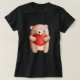 Uma t-shirt com uma ilustração de aquarela fofa. Um ursinho castanho carregando um grande coração vermelho.