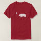 Uma silhueta branca de um urso pardo e estrela solitária contra uma camiseta escura.