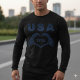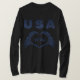 Show your American pride with a dark twist. This unique t-shirt features the "USA" text and the year "1776" rendered in an intricate blue circuit-style maze pattern. The centerpiece shows two skeleton hands forming a heart shape, blending gothic aesthetic with patriotic spirit. Perfect for Independence Day, history buffs, or anyone who loves edgy, alternative Americana streetwear.