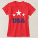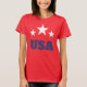 Show your patriotism with our USA t-shirt, featuring bold red, white, and blue colors. The front proudly displays "USA". Perfect for any patriotic event or casual wear, this t-shirt combines iconic American imagery with stylish design. Celebrate your love for the United States with this unique and meaningful tee