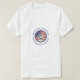 As t-shirts gráficas de eleição pró-democracia apresentam um gráfico patriótico de crachá de estátua de liberdade, de cor central, com um texto circular que diz "Use a sua voz, use o seu voto, salve a democracia e vote azul.