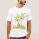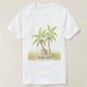 Camiseta Vagabundo, prancha, palmeiras e areia da praia