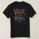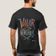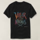 A t-shirt contém a frase "valar morghulis" num design de cor variável. Cada letra é uma cor vibrante diferente, criando uma tela visualmente impressionante e atraente para os olhos. O olhar geral é gráfico e contemporâneo, perfeito para fãs do Game of Thrones que querem mostrar seu fandom de na moda.