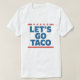 Celebre a liberdade e os tacos com um lado de humor político nesta ousada camiseta da paródia Trump "Vamos Taco". Apresentando um esquema de cores vermelho, branco e azul, cinco estrelas, e texto em bloco, esta camisa é uma reviravolta engraçada no popular meme "Let's Go Brandon" - perfeito para fãs de sátira, tacos e diversão patriótica. Quer você esteja indo para um CHURRASCO de 4 de julho, comemorando Cinco de Mayo, ou apenas trolando seus amigos com uma boa risada, esta engraçada camisa do taco Trump adiciona sabor a qualquer evento. Excelente como presente de vadia, camisa de meme política ou início de conversa para amantes de taco e fãs de paródia.