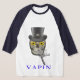 Camiseta Básica, Mangas Raglan 3/4, Branco/Preto, Adulto M